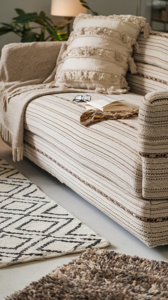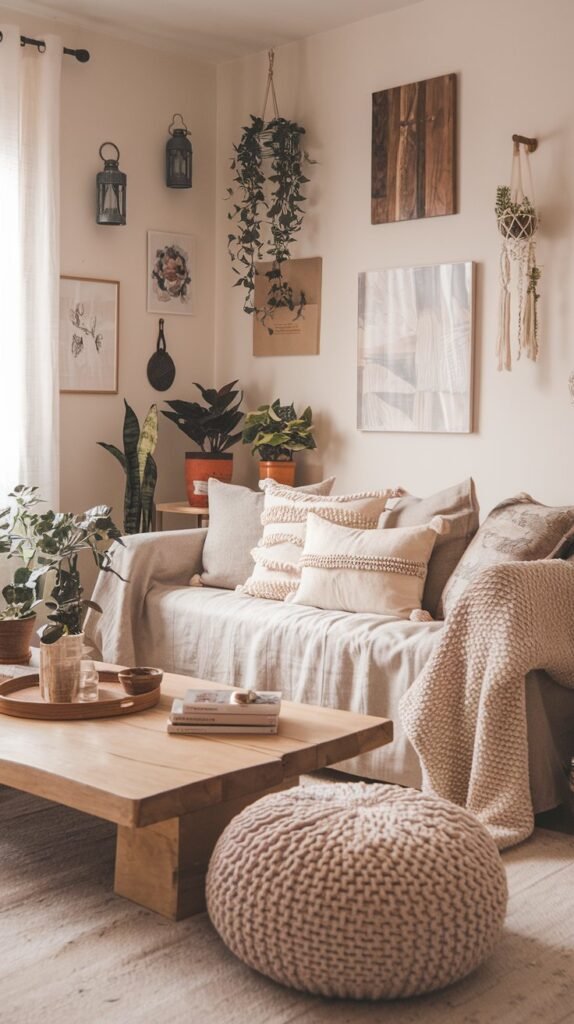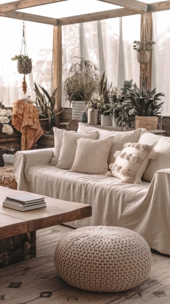 🖼 Picture This: A cozy corner with a linen couch, a chunky knit pouf, and a low wooden coffee table where friends gather for late-night chats.