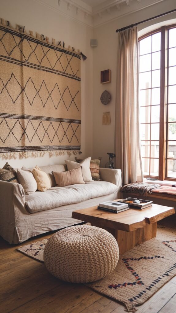 - Hang woven wall art, macramé pieces, or hand-painted murals for texture.