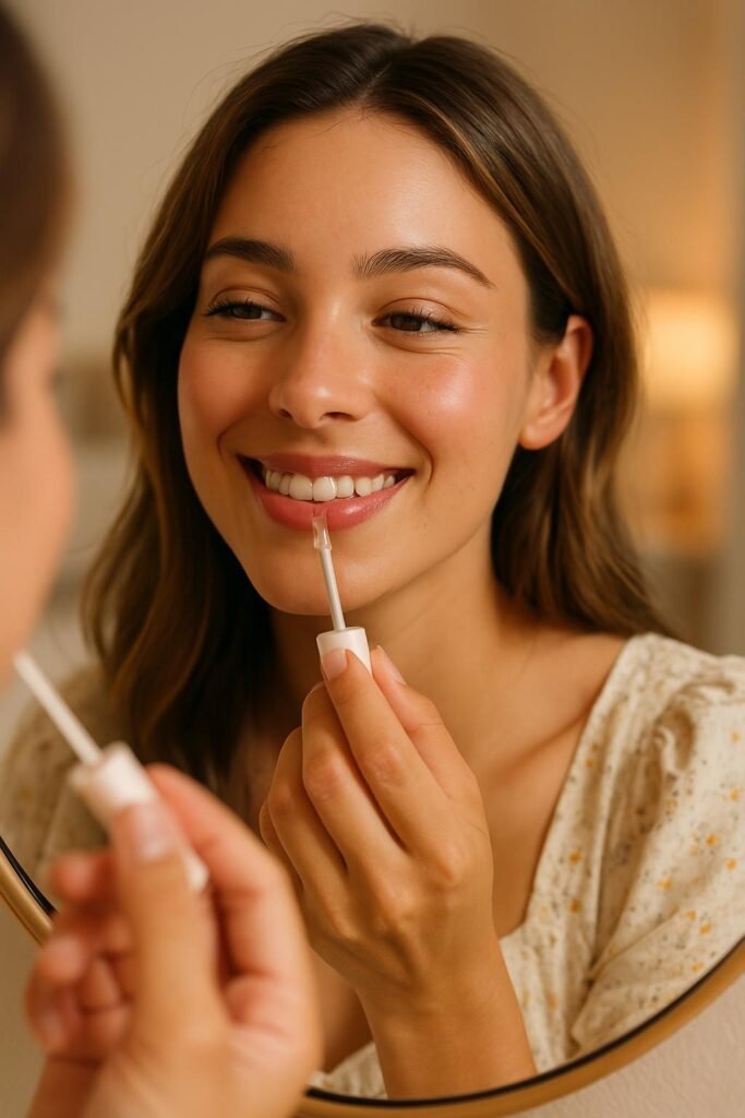 - Apply a plumping balm with a slight tint.