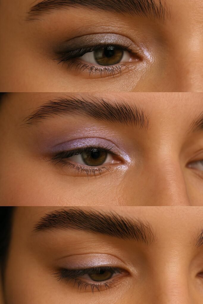 - I tap a hint of lavender or gold shimmer in the center of the lid.